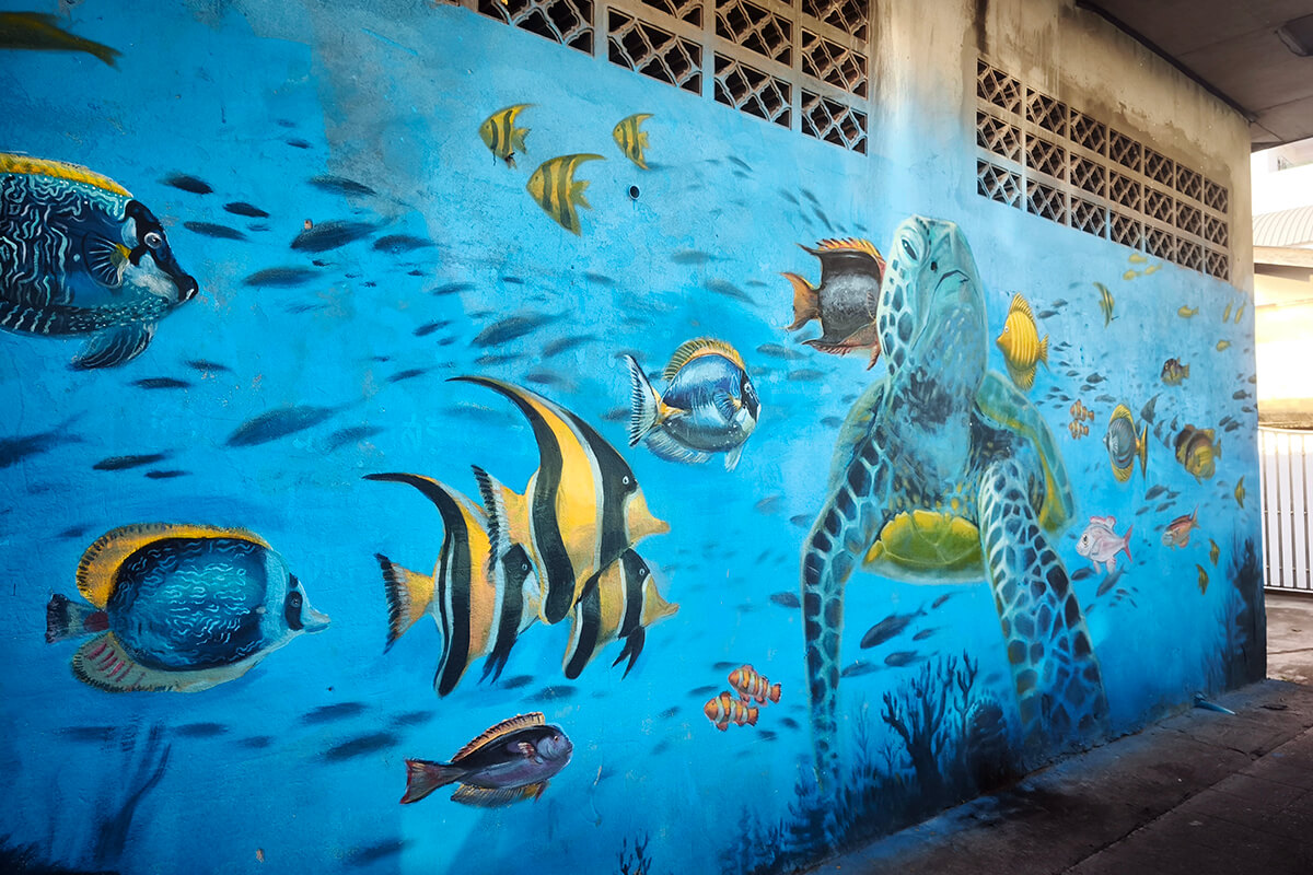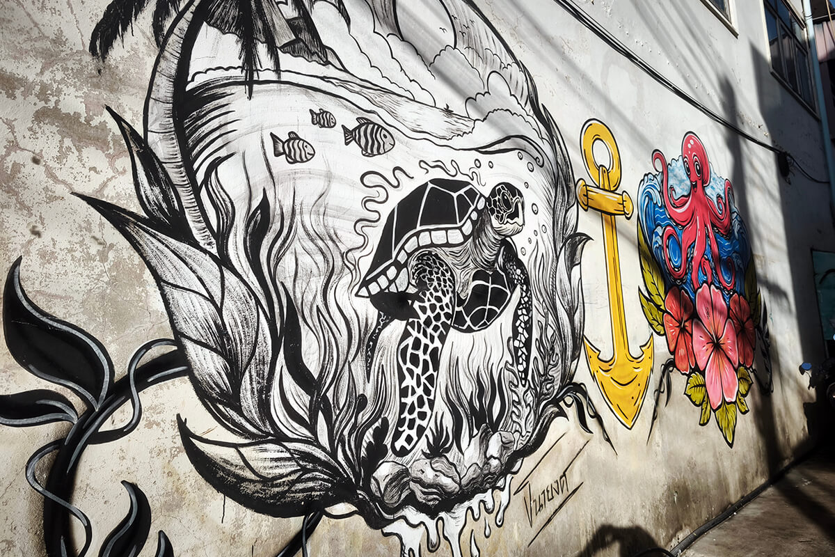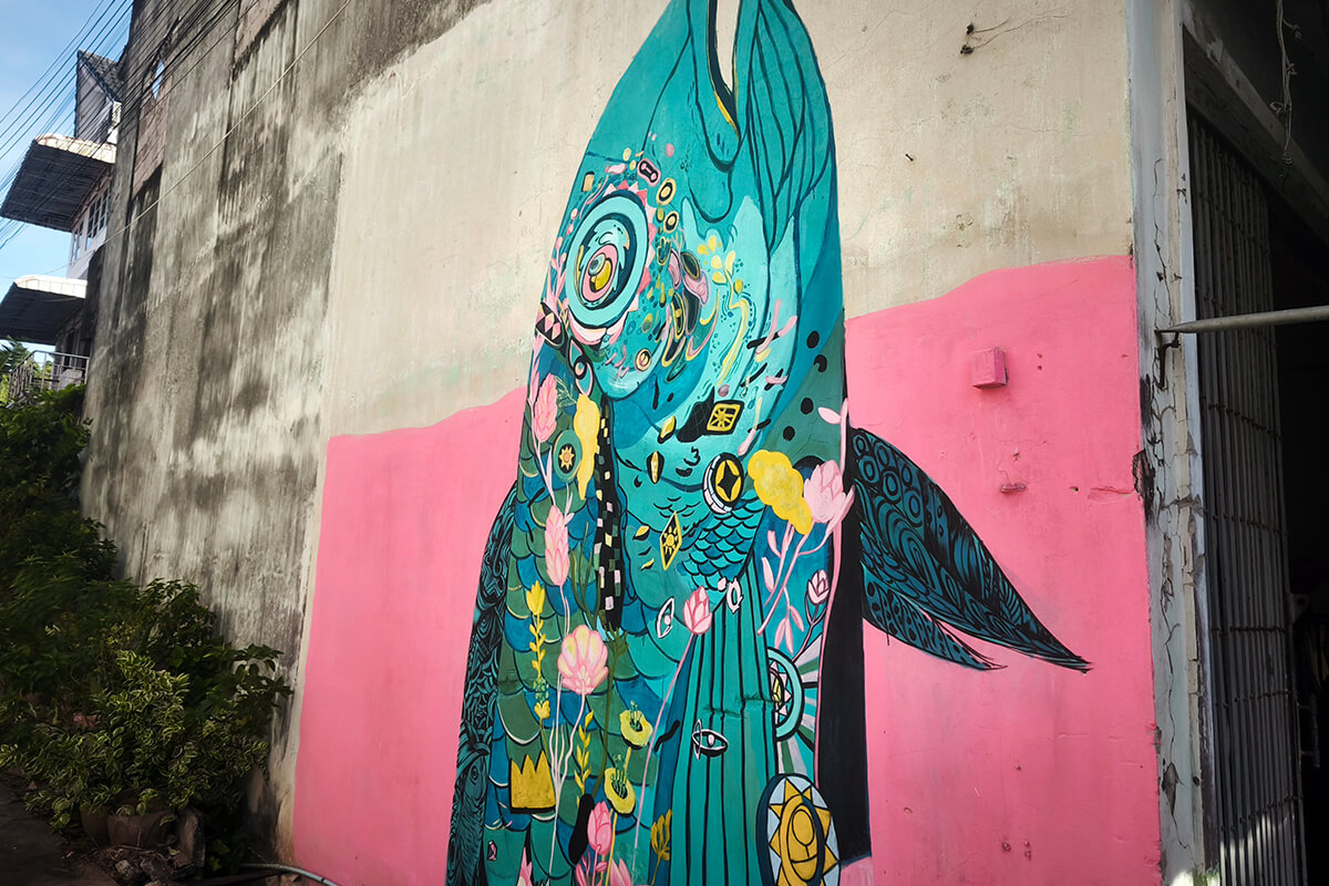 Within a five-minute walk, explore Pak Nam Old Town in search of the wonderful street art. The street art mostly features marine life because Chumphon is known for its marine biodiversity and colourful corals.