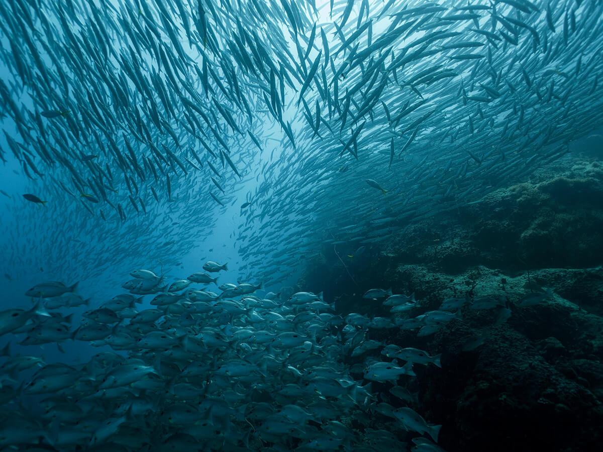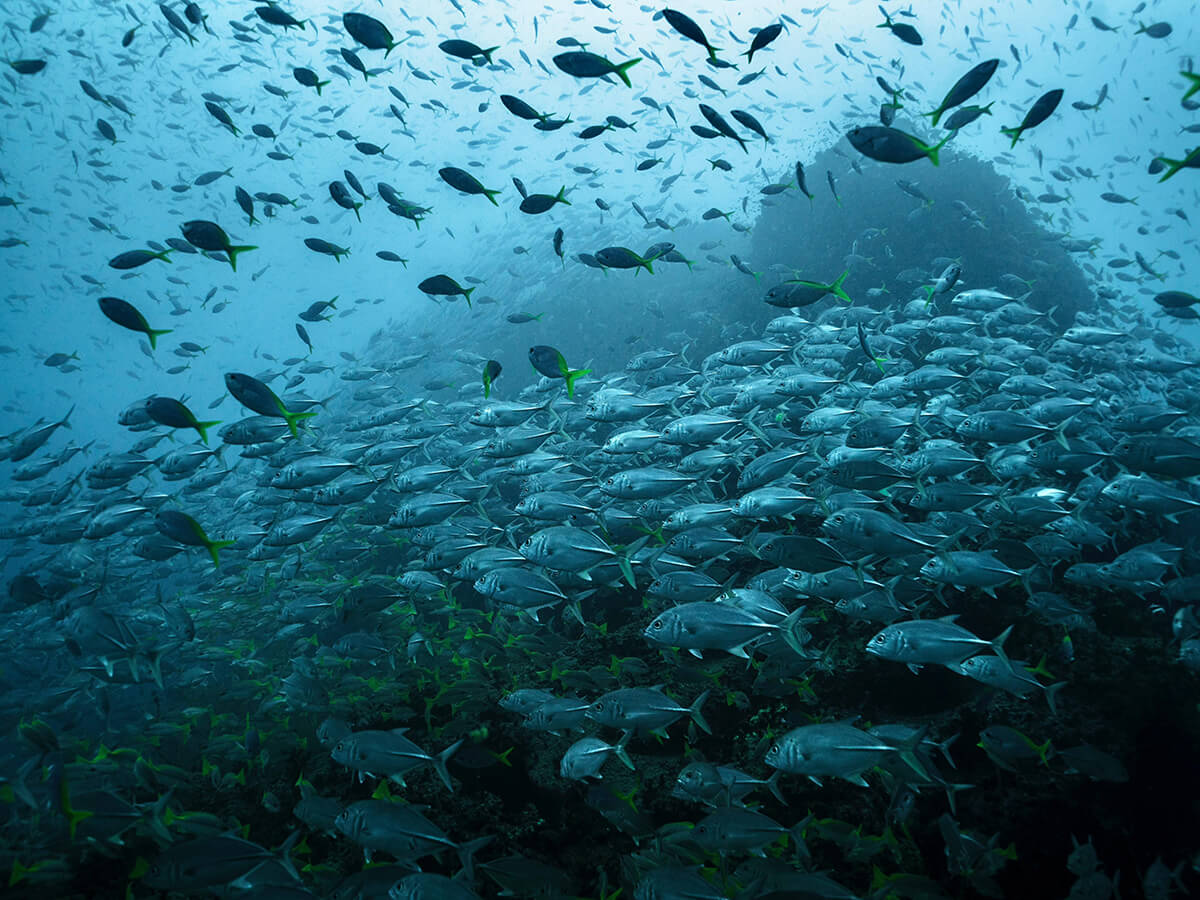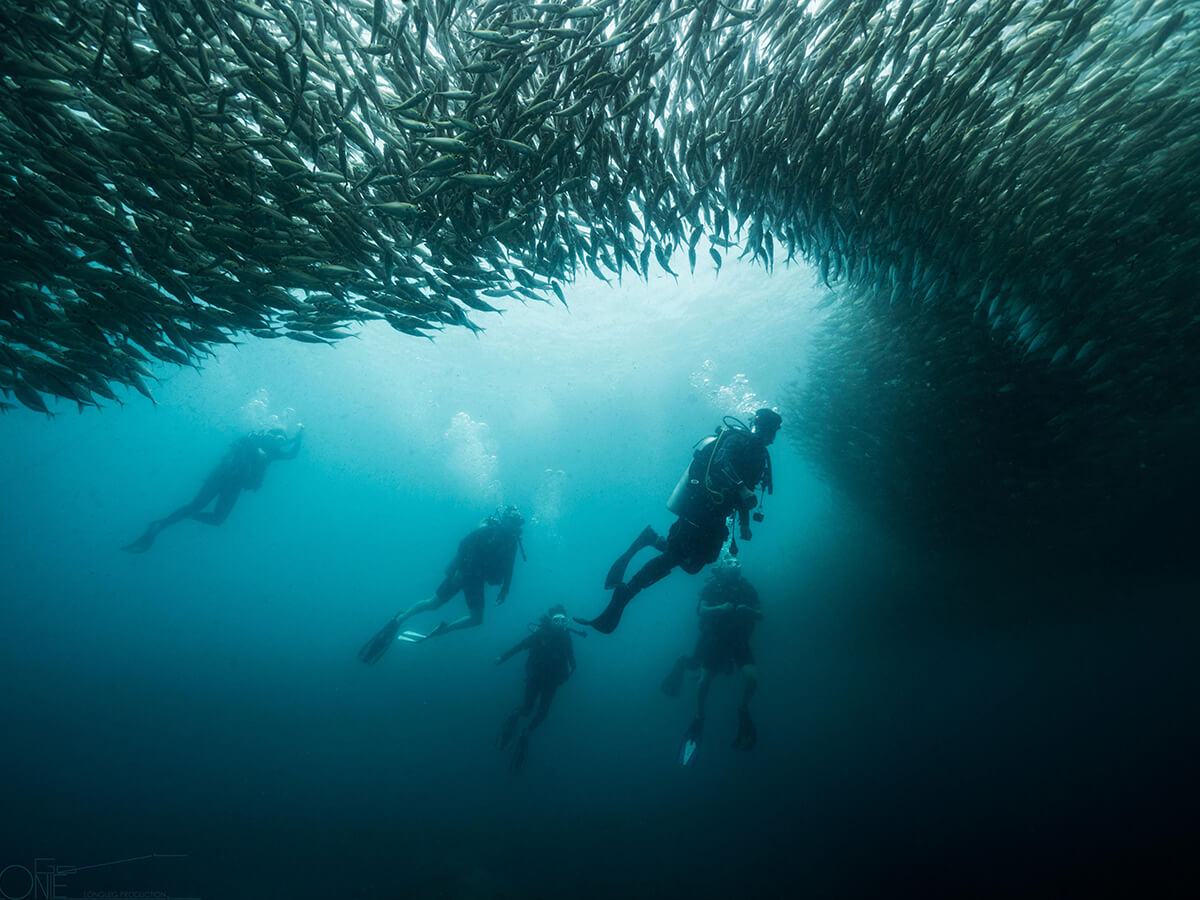 • Abundant schools of fusiliers and trevally; macro life in crevices (nudibranchs, shrimp, gobies)