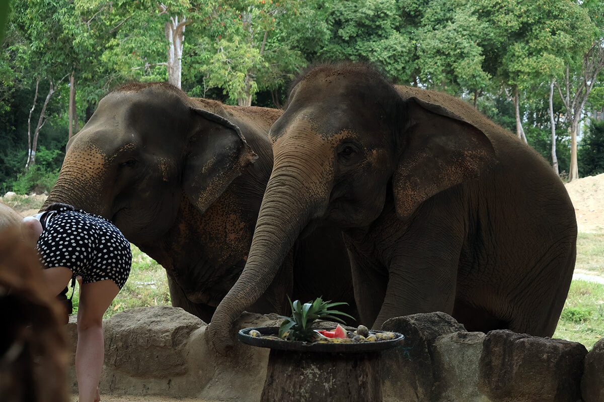 Samui Elephant Haven Sanctuary offers a haven for elephants to walk around freely, eat, cool down, and play. There are no chains!